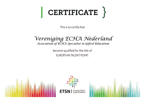 Het ECHA Netwerk Nederland maakt als National Talent Centre of the Netherlands (NTCN) deel uit van het European Talent Support Network (ETSN). Samen dragen we bij aan het stimuleren van talenten en creativiteit bij kinderen, jongeren en volwassenen in Nederland en in Europa.